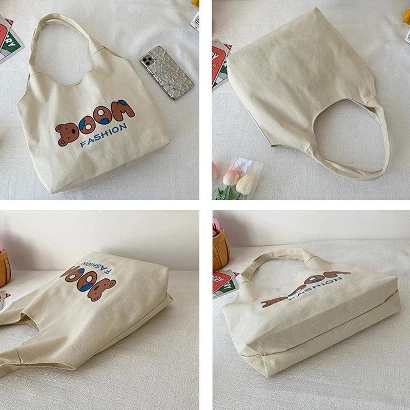 This spacious tote bag is perfect for shopping and everyday use. It features a cute bear design on durable canvas material. Carry your essentials in style with this reusable underarm bag.