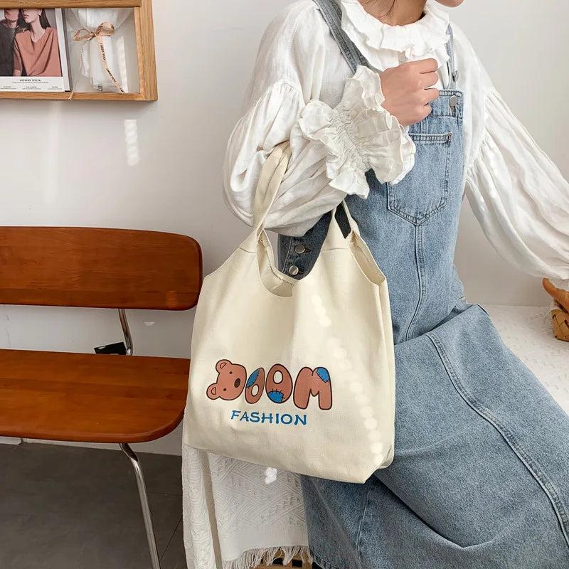 Women Bear Canvas Tote Bag Large Capacity Handbag