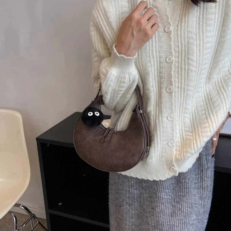 Women Brown Shoulder Bag Half Moon Messenger Soft Pu Leather Clutch