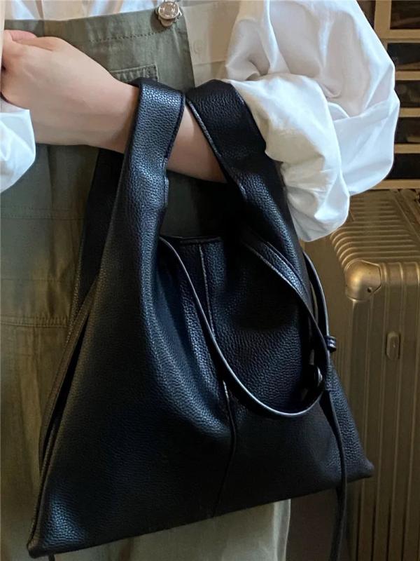 Women Bucket Bag Soft PU Leather Large Capacity Lady Shoulder Bag