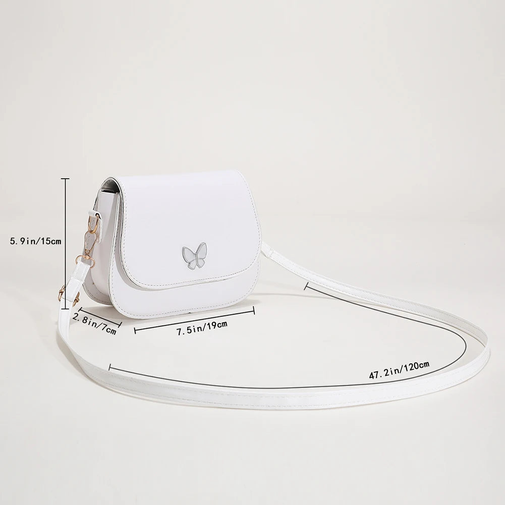 This stylish and compact shoulder bag is made of high-quality leather with a butterfly design. It features a solid flap with a magnetic buckle closure, making it convenient and secure.