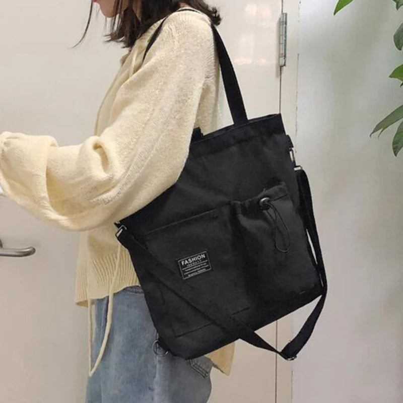 Women Canvas Bag Zipper Shoulder Bag Large Capacity Tote Eco Shopping Bags