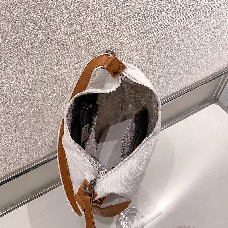 Stay stylish and organized with this canvas handbag that offers a large capacity. Perfect for daily use, this shoulder bag is designed for the modern woman!