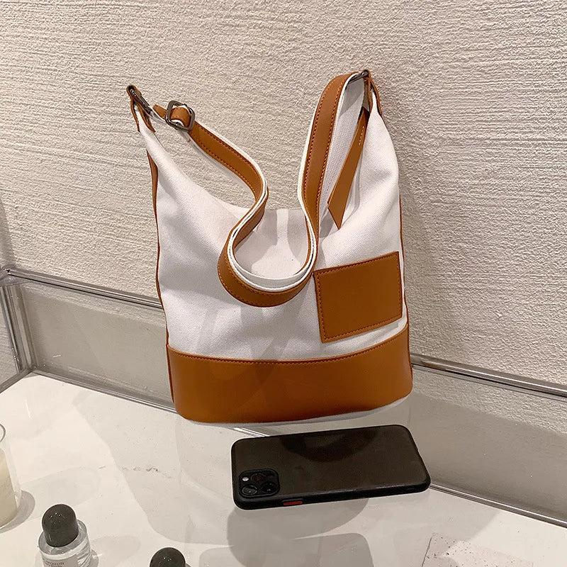 Women Canvas Handbags Lady Shoulder Contrast Large Capacity Bolsa Feminina