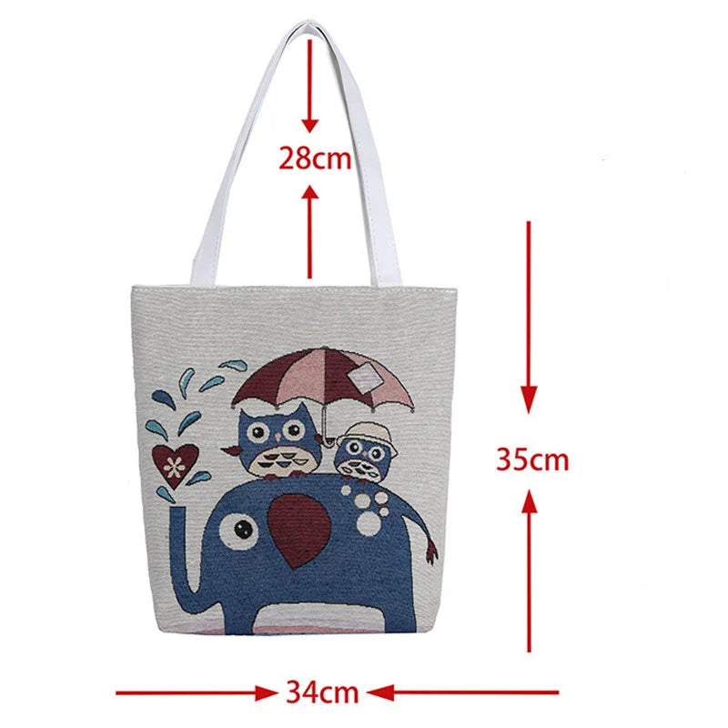 Women Canvas Shoulder Bag Paint Casual Shopper Reusable Handbag