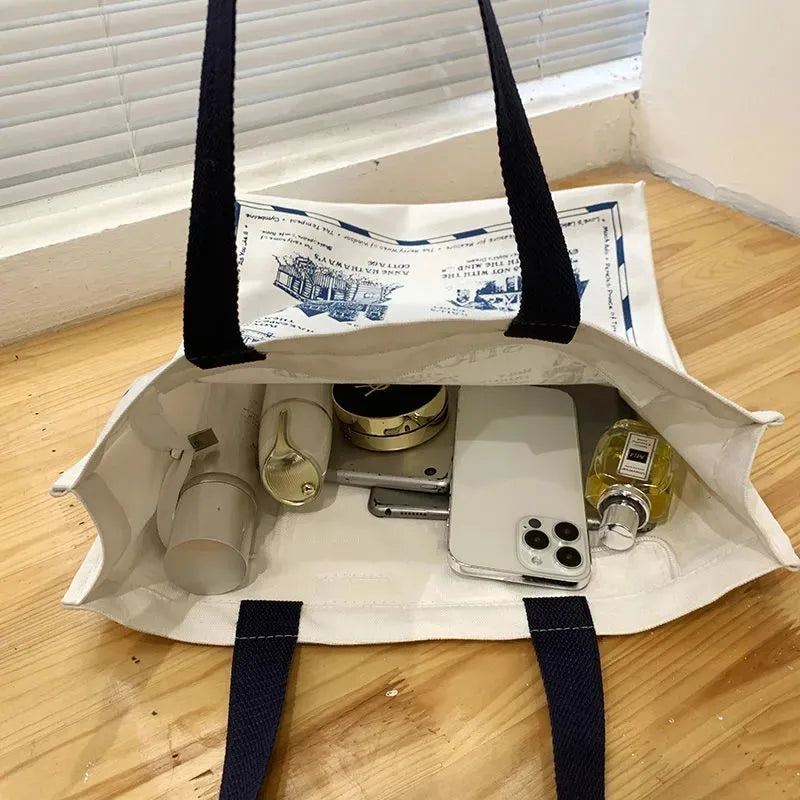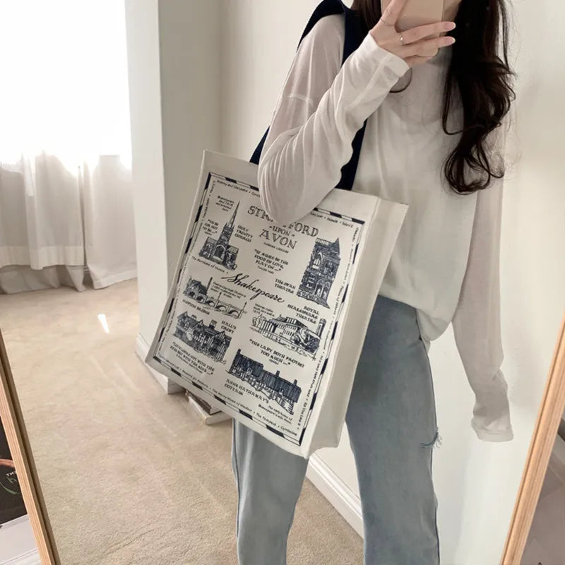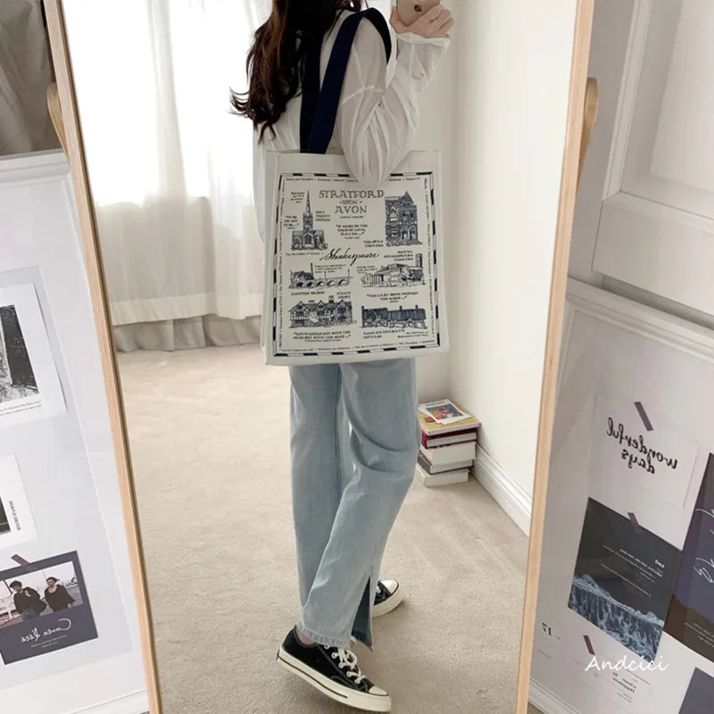 Women Canvas Shoulder Bag Shakespear Printing Casual Handbag Tote Bag