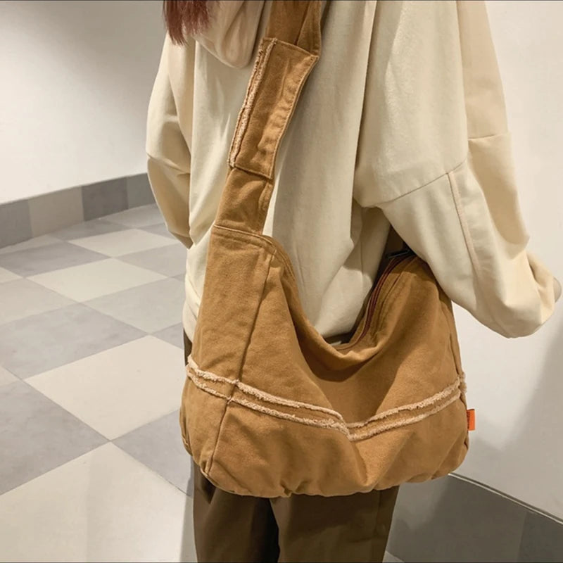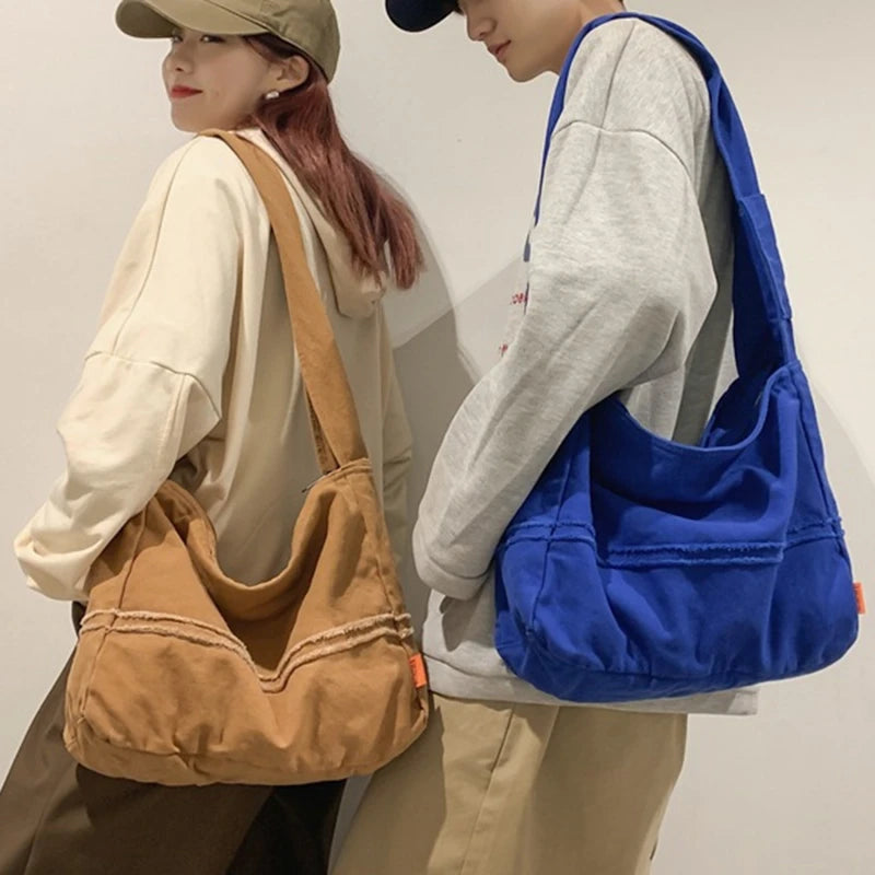 Women Canvas Shoulder Bags Large Capacity Handbag Tote Solid Crossbody Bag