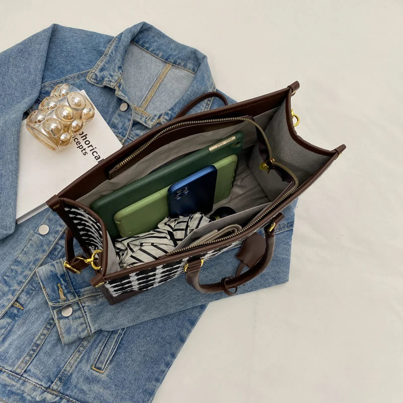 Stay stylish with this casual canvas handbag that offers a spacious interior for your essentials. Perfect for everyday use.