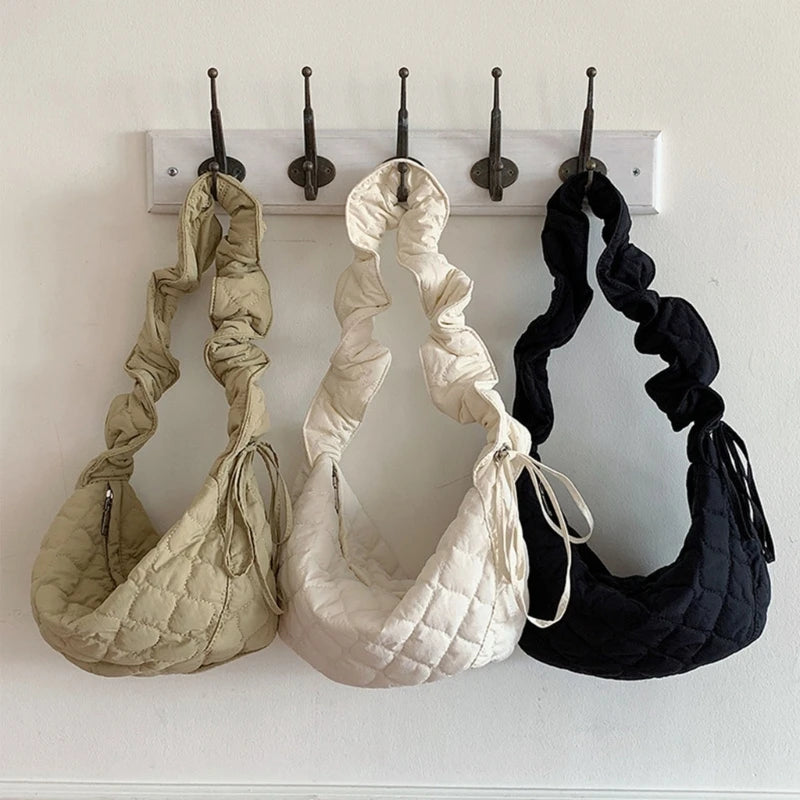 Women Casual Ruched Shoulder Bag Quilted Crossbody Handbag