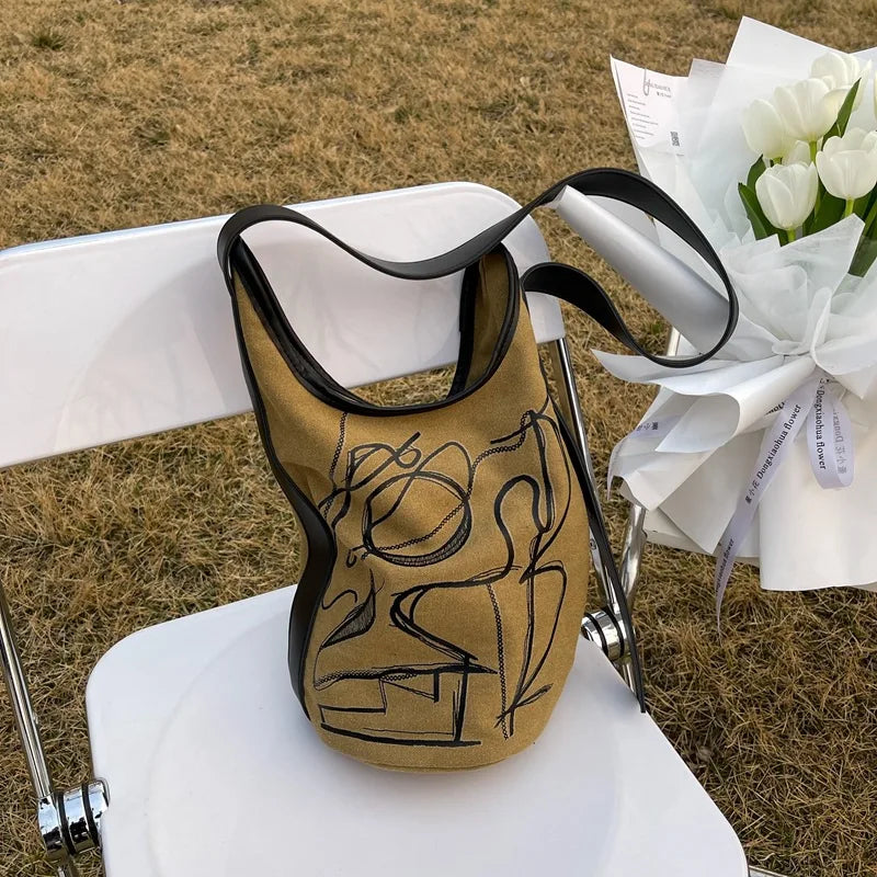 Stay stylish with this versatile bucket bag featuring stripe print design. Made of durable canvas material, it offers a large carrying capacity for your essentials.