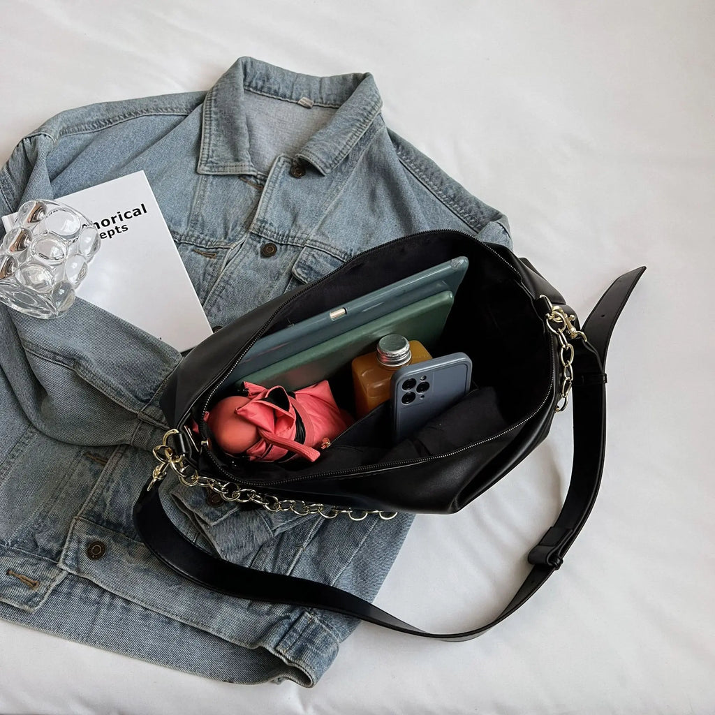Description:This high capacity hobo shoulder handbag offers a stylish solution for carrying your essentials. Made of PU leather, it's durable and practical.Features: Stylish and functional women's crossbody bag Made of high-quality PU leather material Chain shoulder strap for added convenience Spacious design for high capacity storage Ideal for daily use...