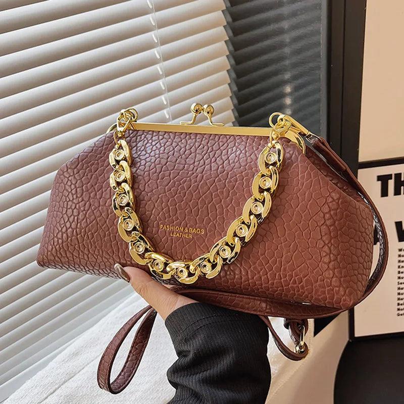 Women Chain Shoulder Bags Green Brown Clutch Handbags Clip Crossbody Bags Totes