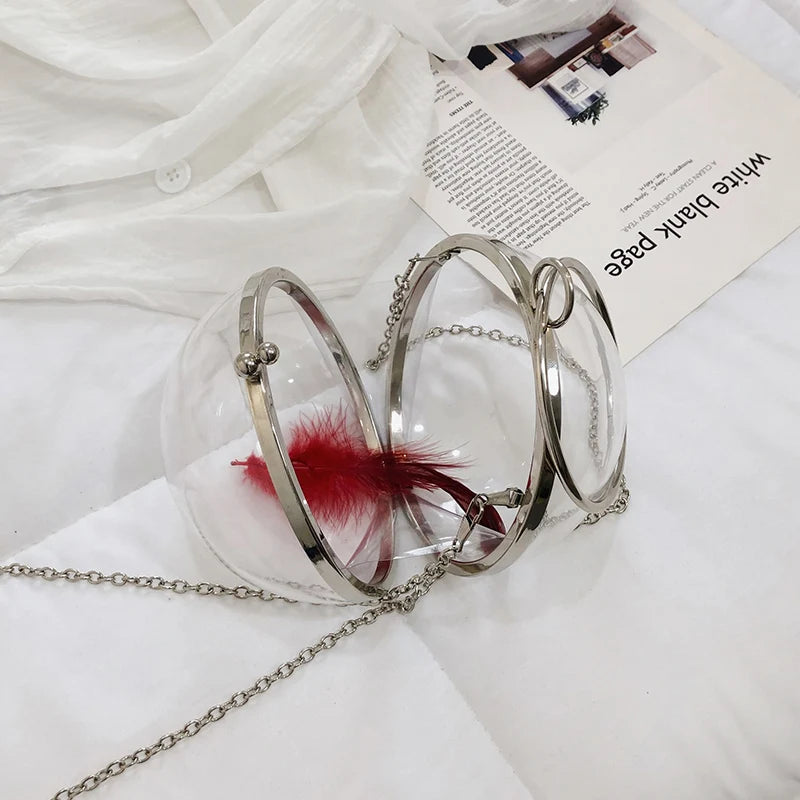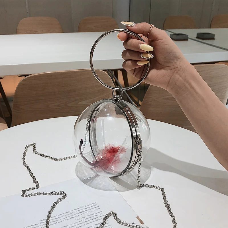 This stylish handbag is made of transparent acrylic material with a chain strap, perfect for carrying your essentials. Ideal for casual outings or special occasions.