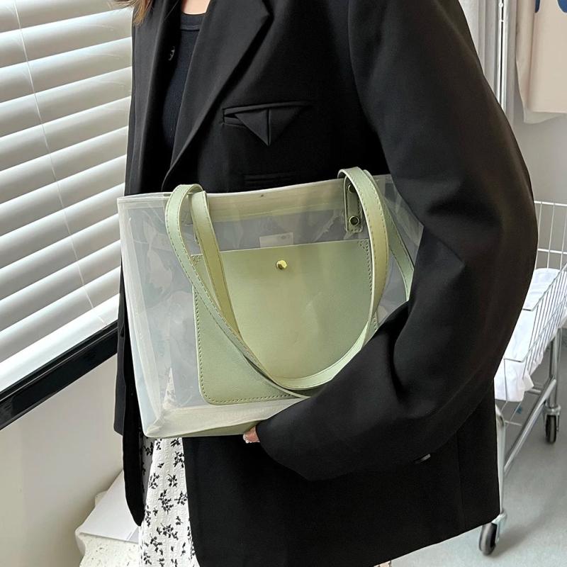 Women Clear Tote Transparent Handbags Large Shopper Bag Summer Beach Pouch