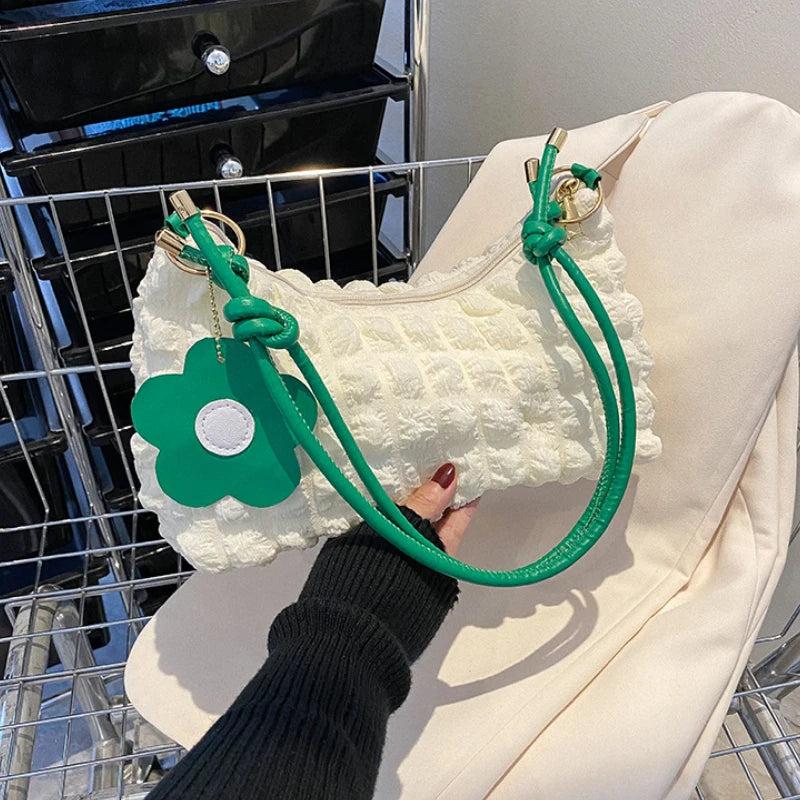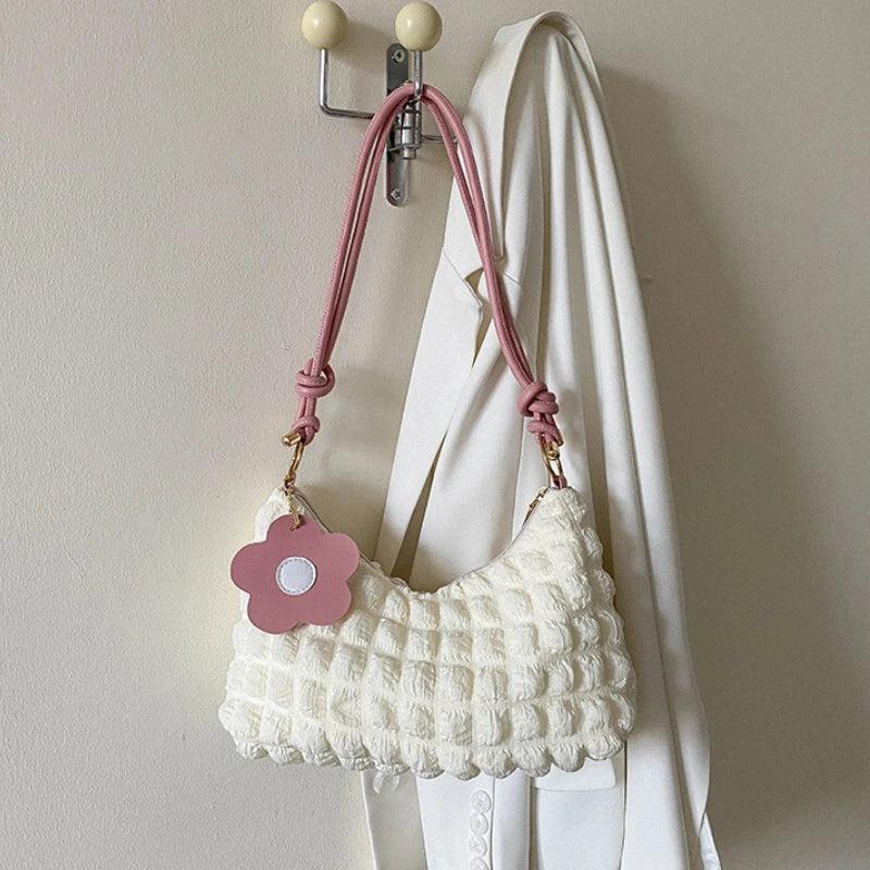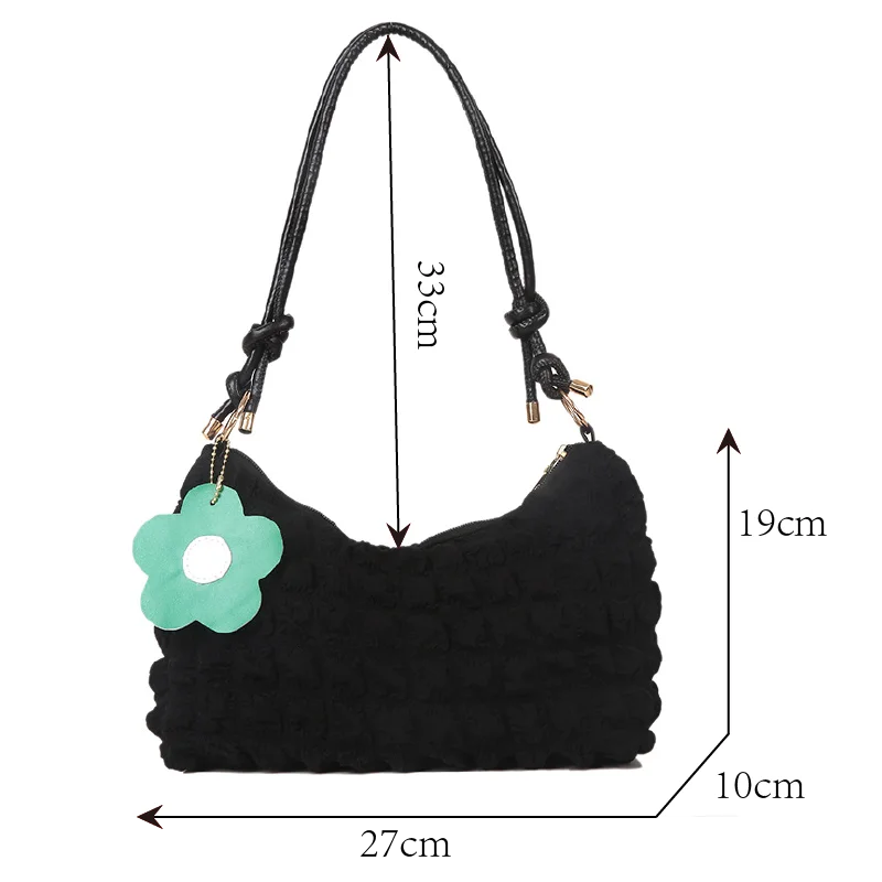 Elegant and stylish shoulder bag made from soft cloth fabric. Featuring a unique bubble design of clouds for a chic look.