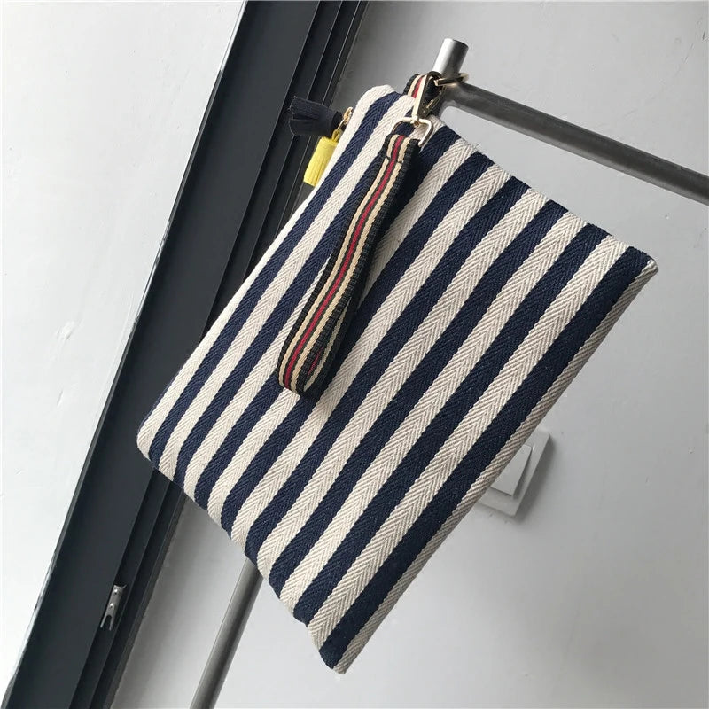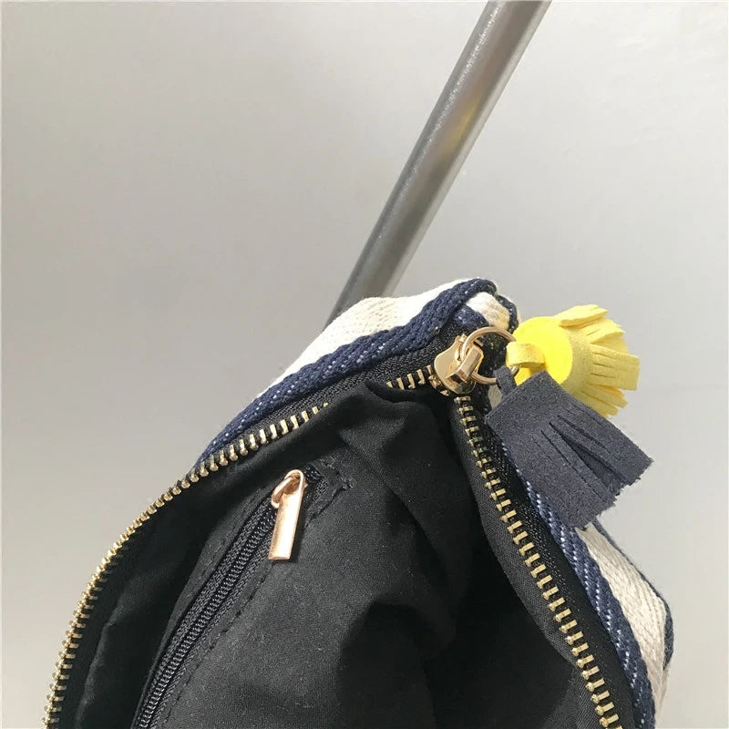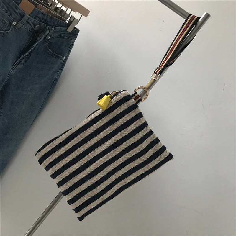 Women Clutch Envelope Bag Tassel Handbag Stripe Evening Purse