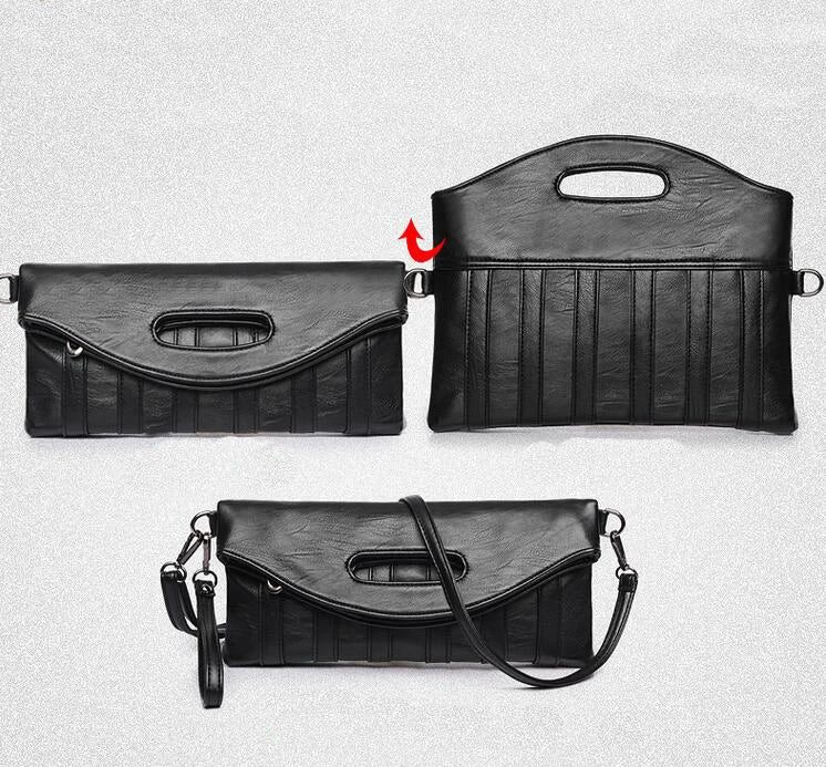 This stylish women's clutch doubles as a crossbody bag, messenger bag, and shoulder bag. Made of high-quality leather, it's perfect for evening parties.