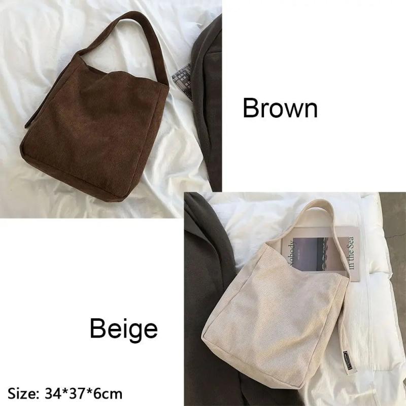 Women Corduroy Shoulder Bags Soft Handbags Tote Bags Girls Students Large