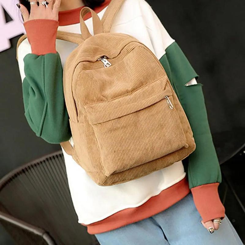 Stay stylish and organized with this corduroy backpack featuring a large capacity and multiple pockets.