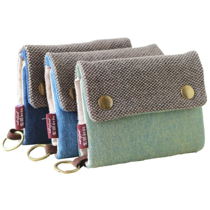 Women Cotton Fabric Short Wallet Gray Denim Ladies Purse