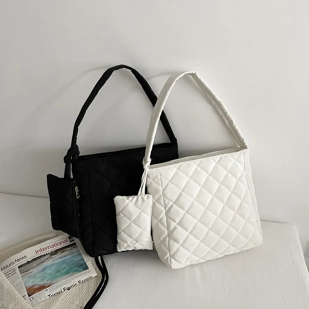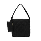 Women Cotton Padded Diamond Lattice Pattern Handbag with Mini Bag