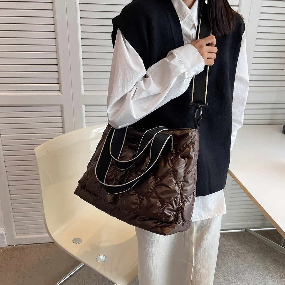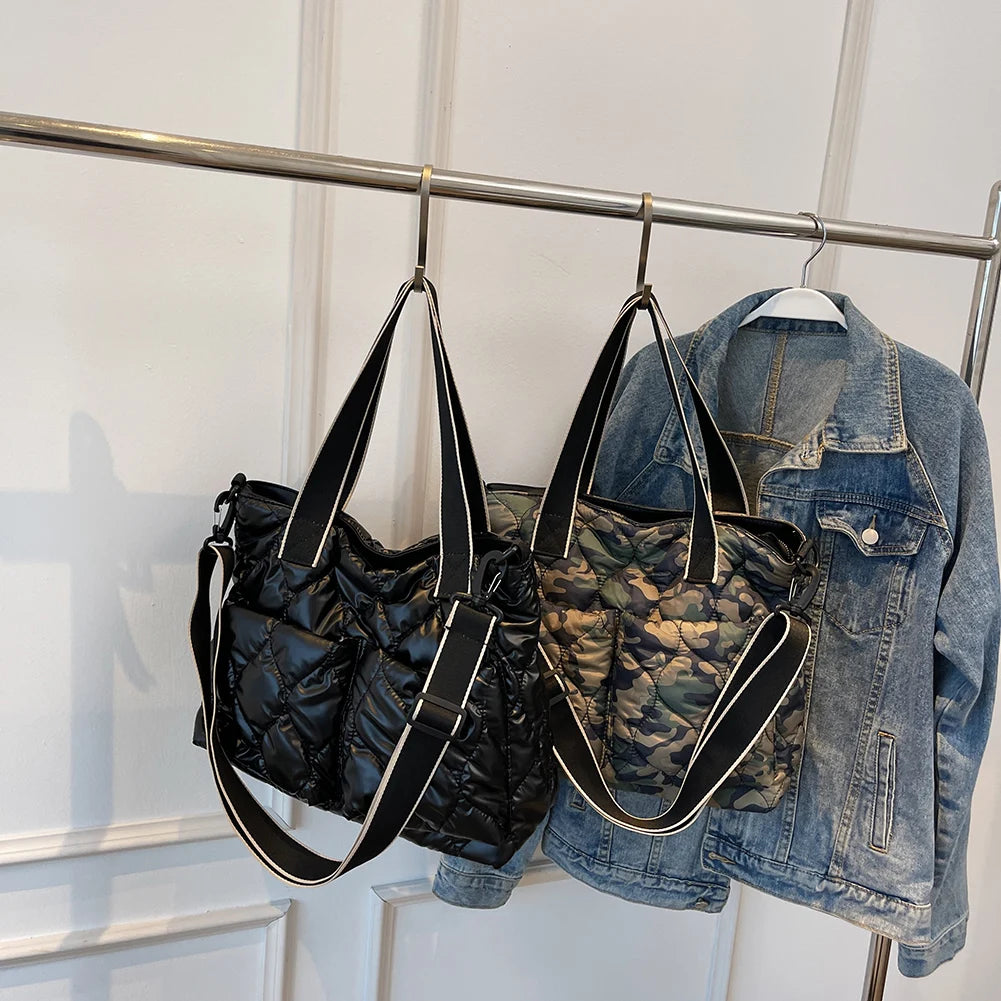 Women Cotton Padded Totes Winter Ladies Crossbody Bags Large Capacity