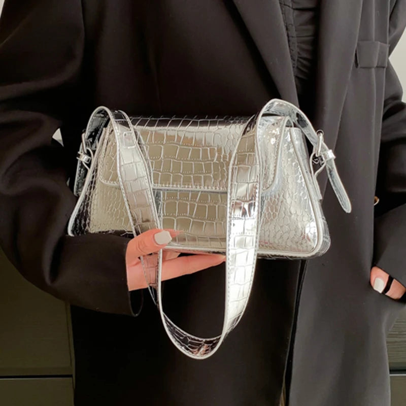 Elevate your style with this fashionable Women Armpit Handbag made of premium crocodile leather. The versatile design allows you to carry it as a shoulder bag or crossbody bag. Perfect for evenings out.