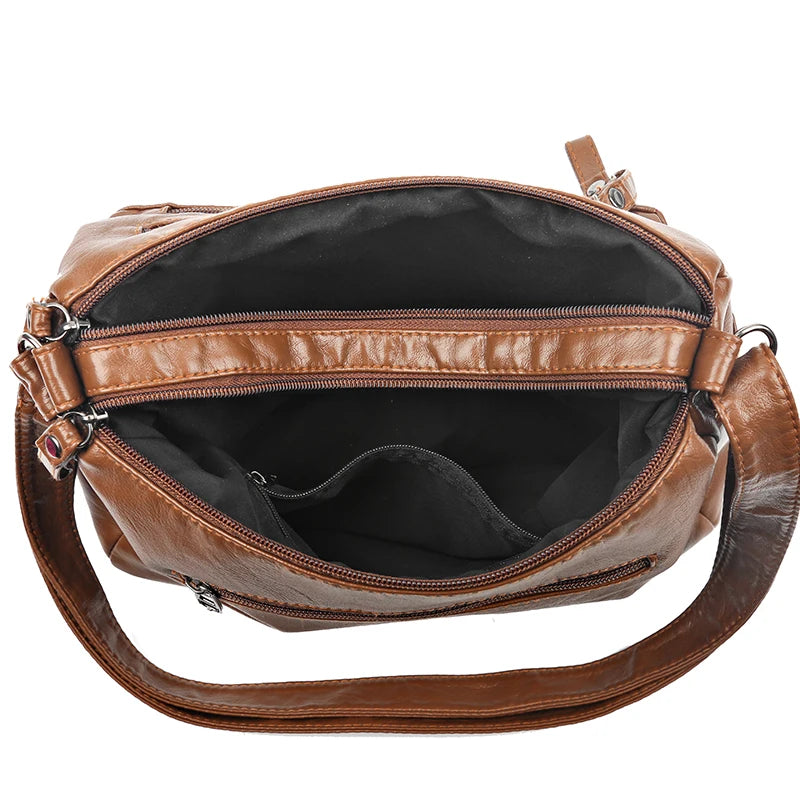 This vintage crossbody bag is designed with a large capacity and multiple pockets for convenient storage. Made of high-quality PU material, this shoulder bag features a retro style that adds a touch of elegance to any outfit.