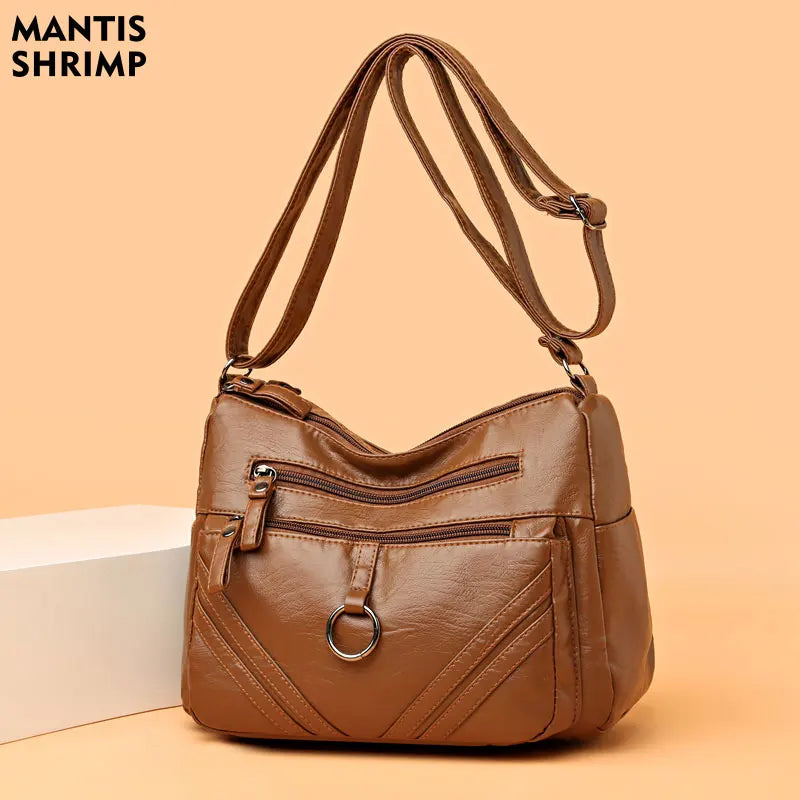 Women Crossbody Bag Large Capacity Tote Shoulder Bag Retro PU Handbag