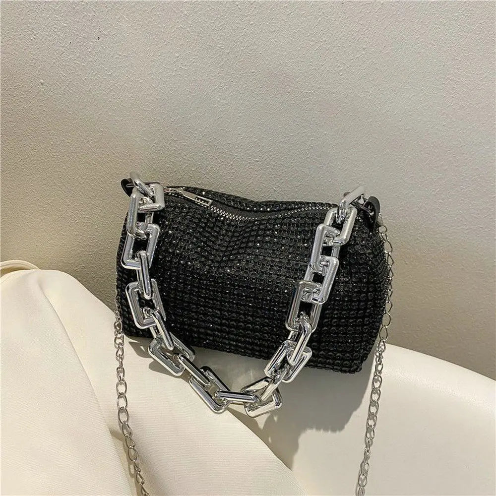 Elegant and stylish women's handbag with rhinestone diamonds, perfect for adding a touch of sparkle to any outfit. Can be worn as a shoulder bag or crossbody bag for versatile use.
