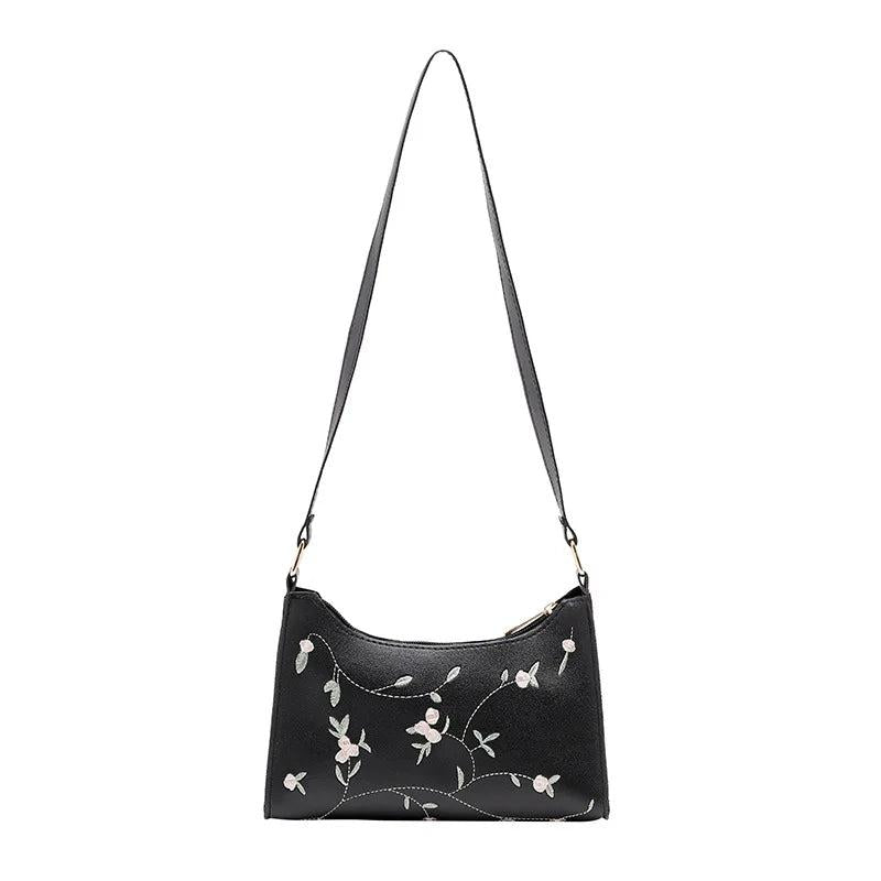 This women's underarm bag features beautiful embroidery and is made of high-quality PU leather. It has a retro design with a solid color pattern, making it a stylish accessory for girls.