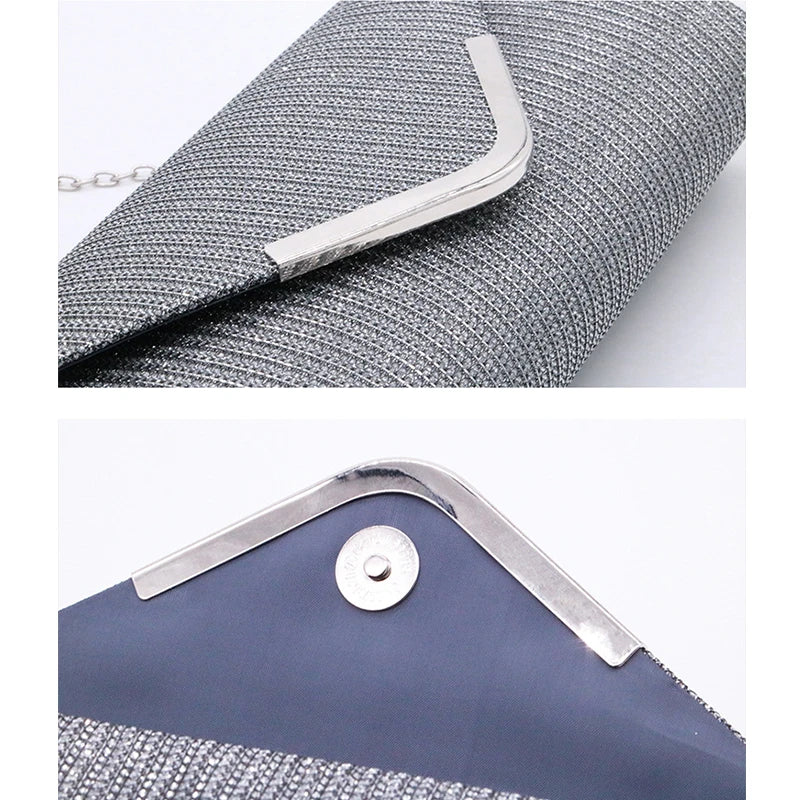 This elegant clutch bag features diamond rhinestones and a stylish design. Perfect for weddings, parties, and banquets.