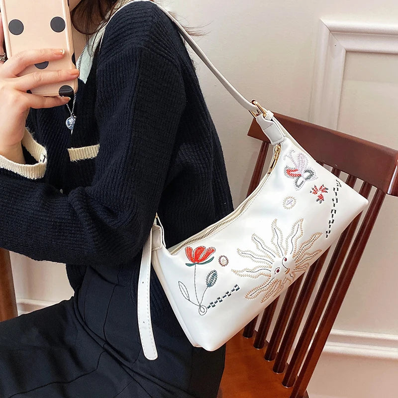 Description:This women's handbag features beautiful flower embroidery and is made of soft PU leather. It can be used as a shoulder bag, crossbody bag, or clutch for your phone and essentials.Features: Stylish flower embroidery design Made of high-quality soft PU leather Versatile - can be worn as a shoulder bag,...