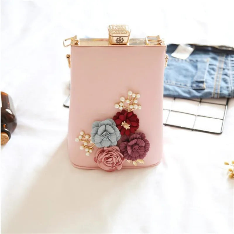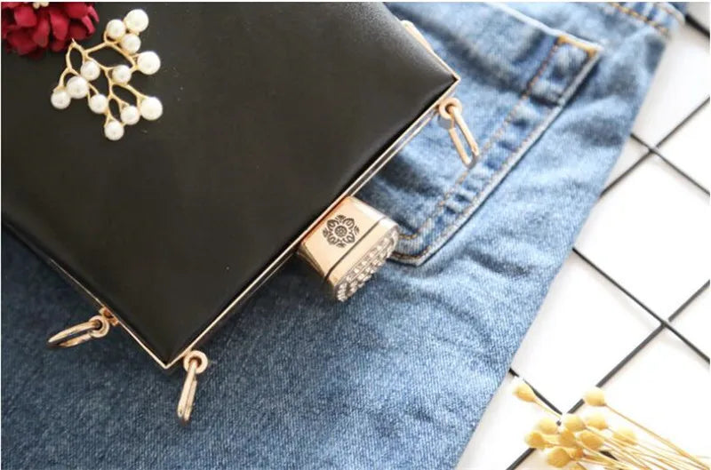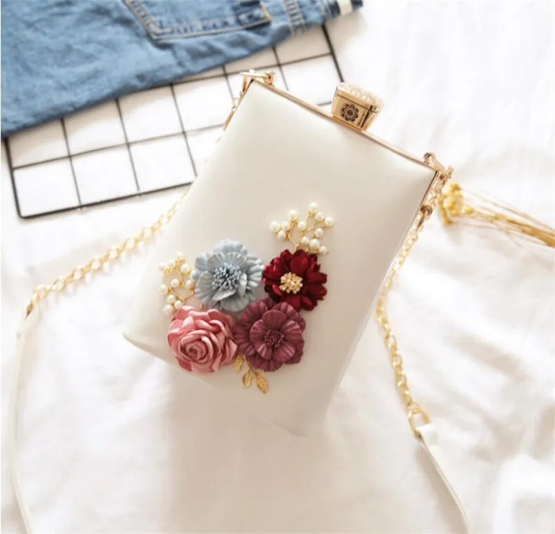 Elegant clutch bag featuring floral design with sparkling diamonds, perfect for weddings and banquets. Comes with a chain strap for convenience.