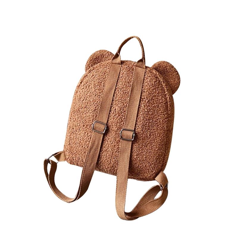 Stay cozy and fashionable with this fleece backpack featuring cute bear ears. Perfect for everyday use with its small size and warm lambswool material.