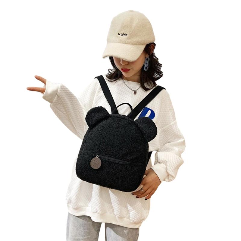 Women Girls Bear Ear Fleece Small Backpack Casual Warm Lambswool Daypack Bag