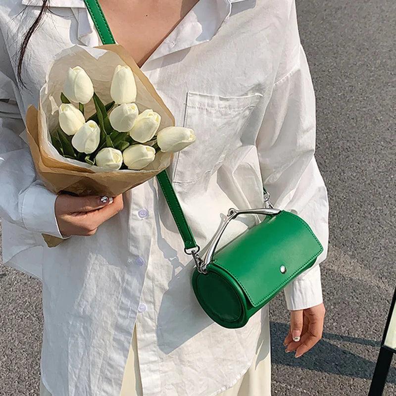 This barrel-shaped shoulder bag is perfect for prom or a night out. Made of high-quality PU leather, this clutch is both stylish and practical.