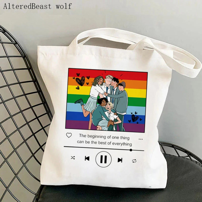 Women Heartstopper Rainbow Pride Gay Shopper Bag Harajuku Shopping Canvas Tote