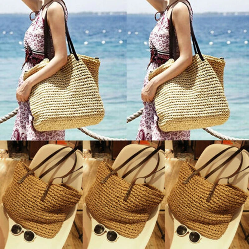 Women Lady Vintage Straw Rattan Bag Large Capacity Shoulder Bags
