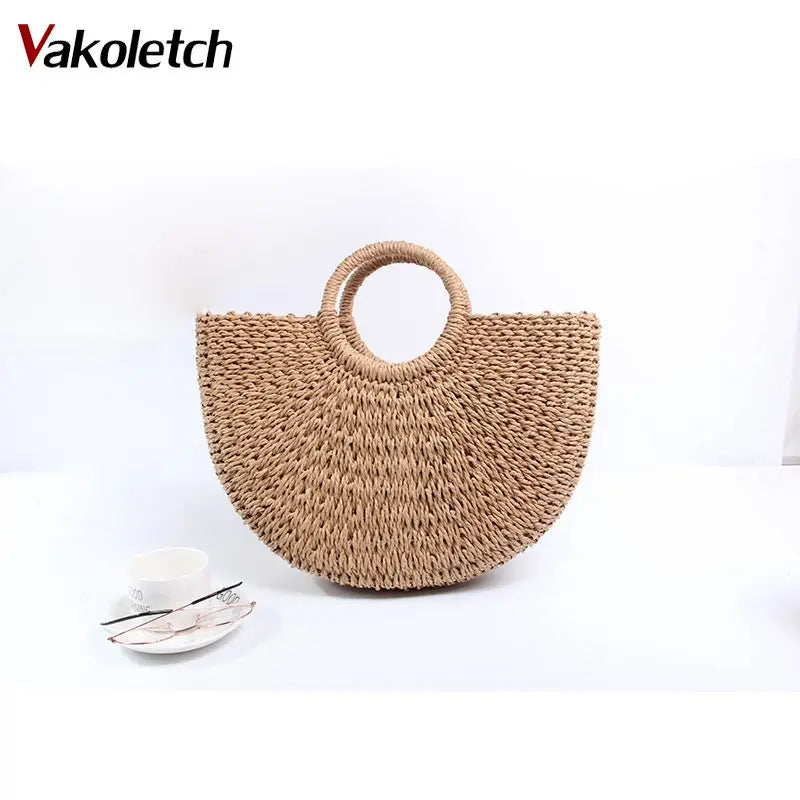 Stay stylish and practical with this women's casual tote bag that features a large capacity for all your essentials. Perfect for shopping or a day at the beach, this hand-woven straw bag is a must-have accessory for the summer season.