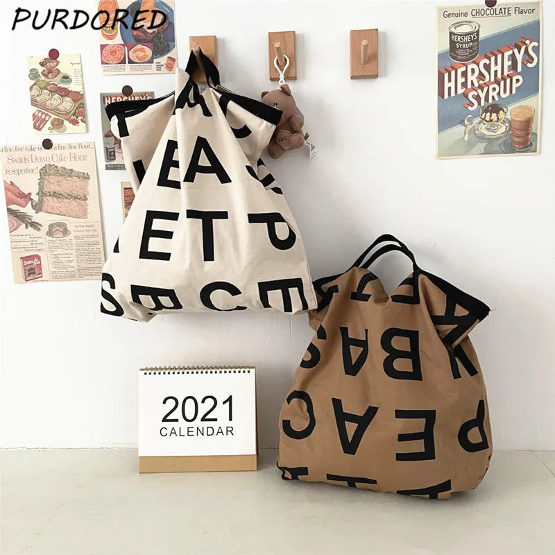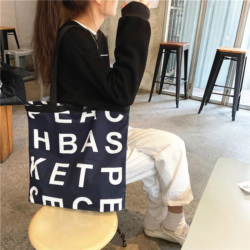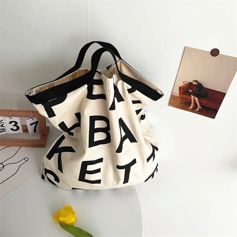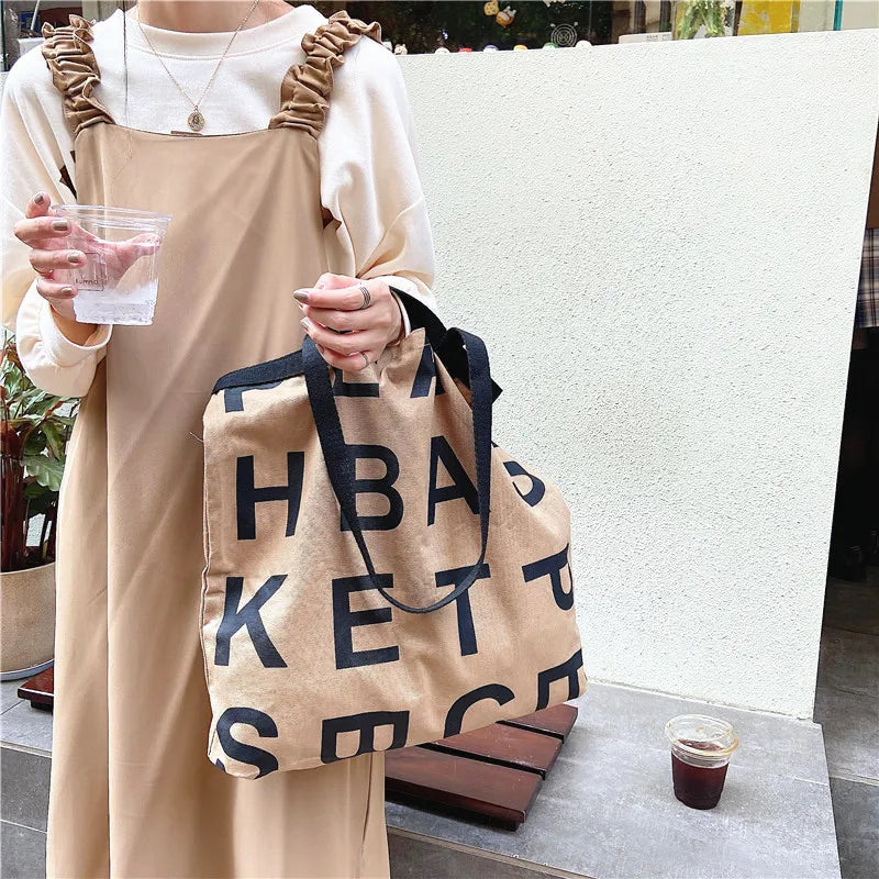 Women Large Letter Canvas Handbag Tote Messenger Shoulder Bag Reusable Bolsa