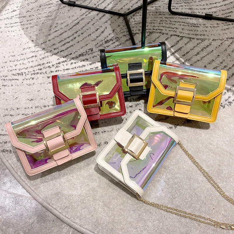 Women Laser Crossbody Bag Holographic Shoulder Bag with Chain Strap