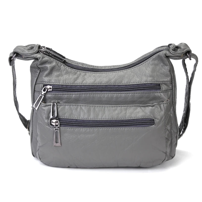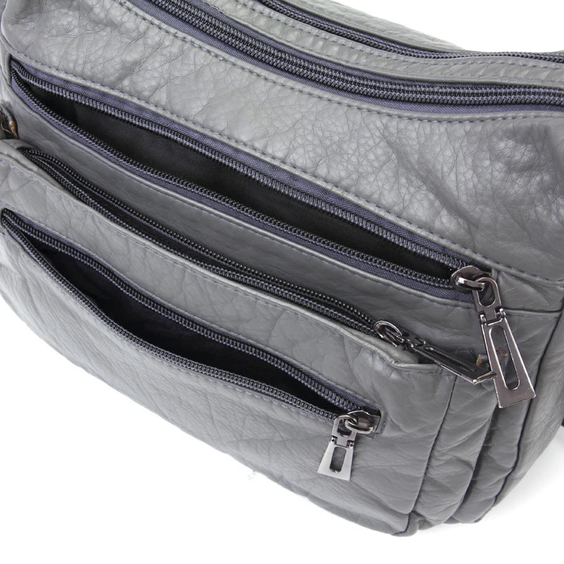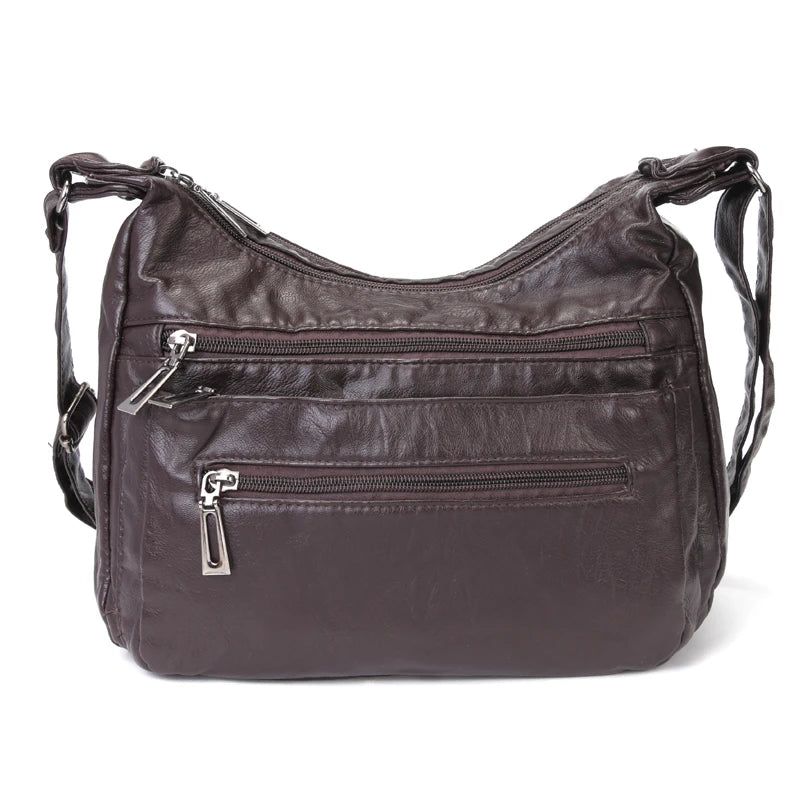 Women Leather Crossbody Bag Soft Patchwork Shoulder Bag Multi-pockets M