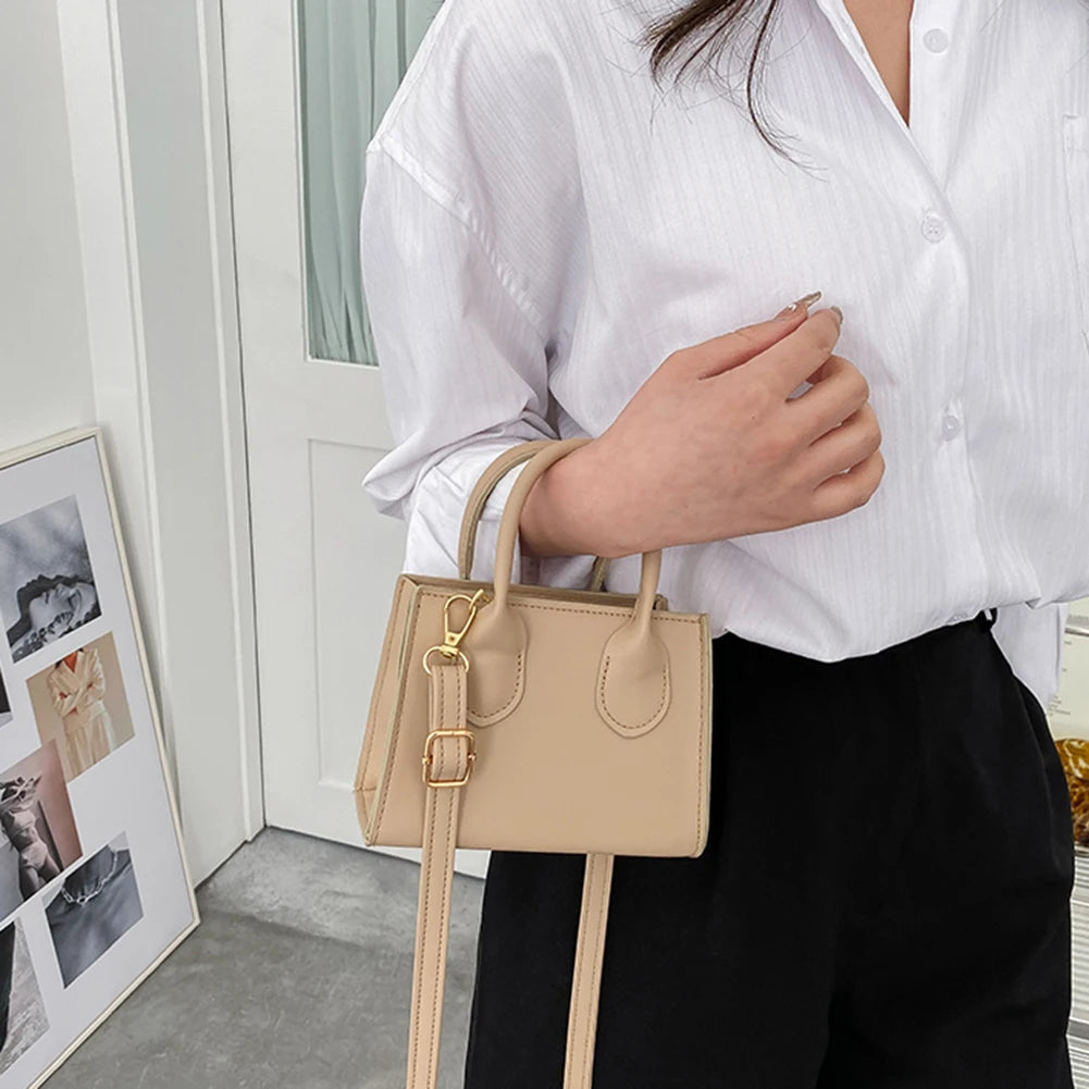 Women Leather Mini Shoulder Messenger Bag Top-handle Handbag Tote Phone Holder