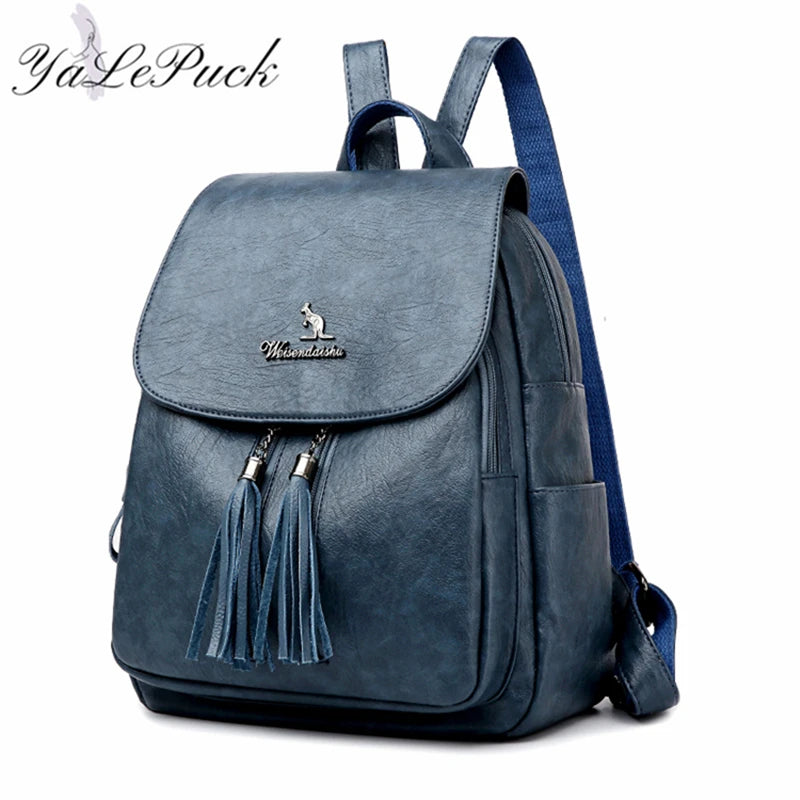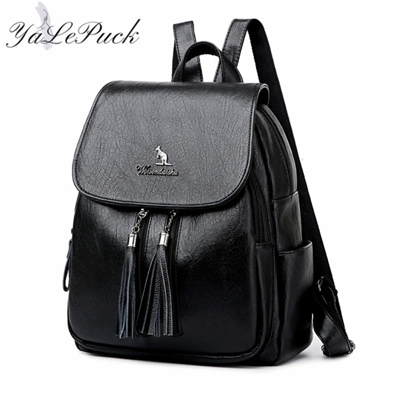 Women Leather Tassel Backpack School Bags for Teenage Girls
