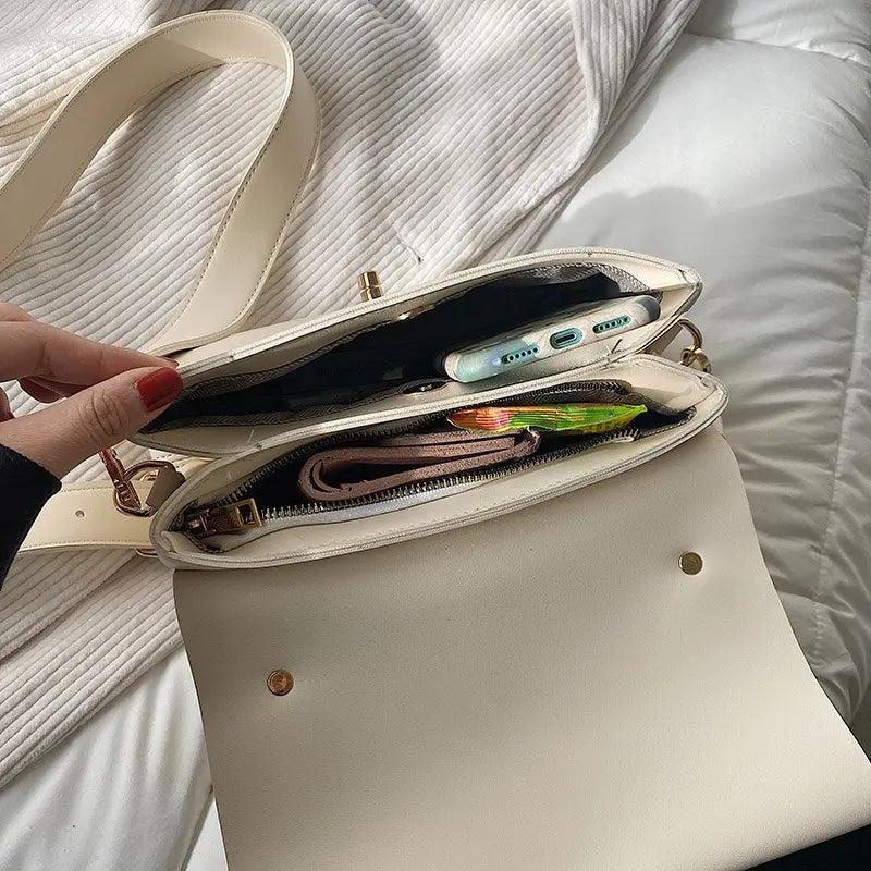 Stay stylish with this solid leather crossbody bag, perfect for summertime!