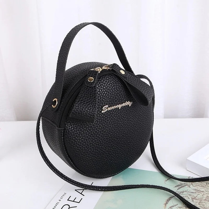 Women Mini Round Handbag PU Leather Crossbody Bag