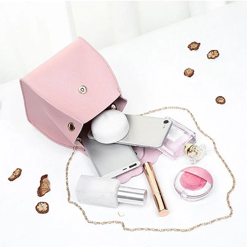 Women Mini Shoulder Bag PU Leather Handbag Metal Chain Messenger Bags