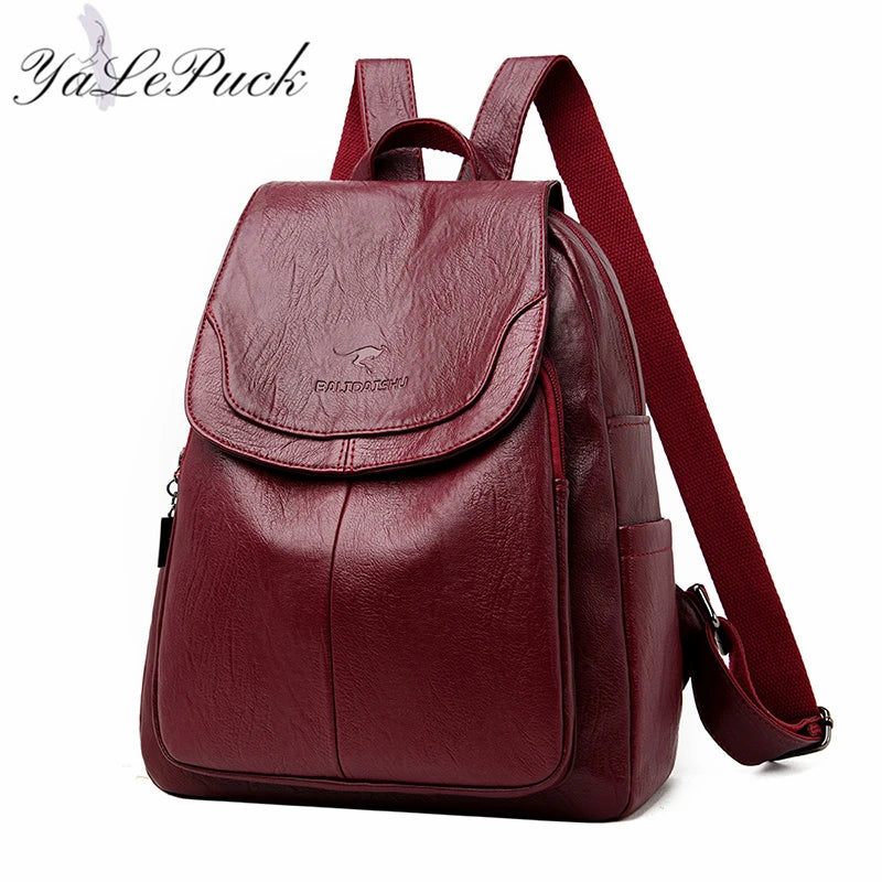 Women Multifunction Shoulder Bags High Leather School Bags for Teenage Girls