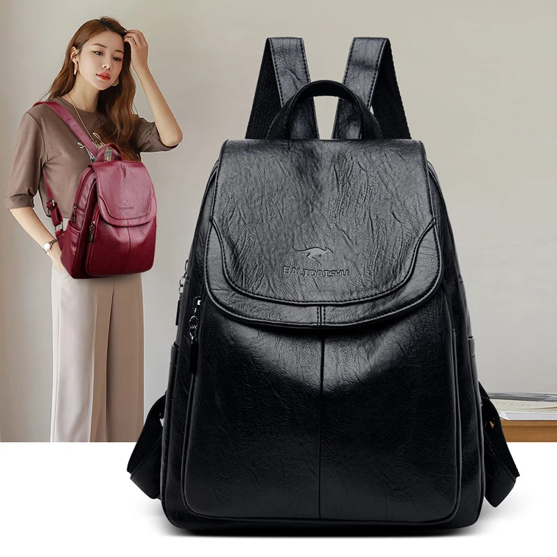 This backpack is designed for teenage girls with its multifunctional features and high-quality leather material. Perfect for school and daily use.